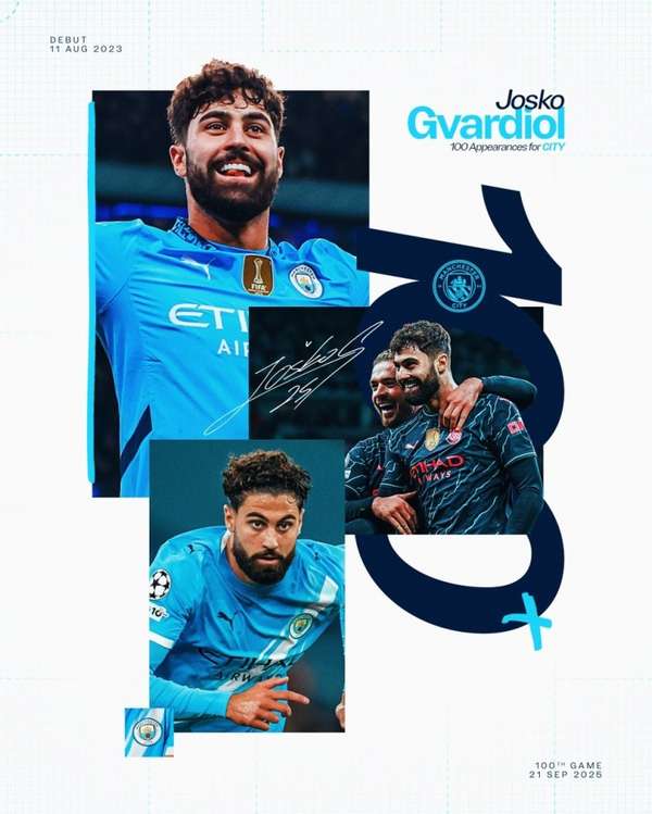9月21日,英超第5轮曼城客战阿森纳的焦点战中,克罗地亚后卫格瓦迪奥尔将迎来代表曼城出战的第100场正式比赛。这位年仅23岁的后防大将自2023年夏窗以9000万欧元从RB莱比锡转会而来后,迅速成长为球队后防线的重要一环。