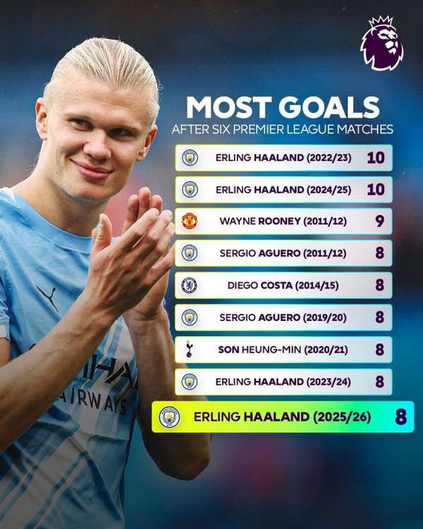 英超联赛官方近日发布一组前锋数据,引发球迷对哈兰德本赛季开局势头的关注。尽管挪威射手在前六轮联赛中已斩获8粒进球,但这一表现仍被官方以幽默口吻称为"追平个人最差开局"。